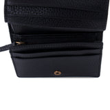 Details: Black Leather / Grass Hardware / Metal Bee Embellishment at Front / Four Card Slots / One Bill Compartment / Two Flat Pockets / One Zip Pocket / Snap Closure