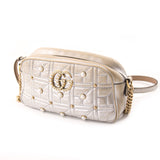 Description: Authentic Pre-Owned Gucci GG Marmont Matelassé Silver Metallic Shoulder Bag