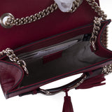 Details: Red Guccissima Leather / Gold Tone Hardware / Shoulder Strap with Chain Link Accent and Leather Pad / Natural Canvas Interior Lining / Single Slit Pocket at Interior Wall / Fold-in Flap Closure at Front / Horse-bit and Tassel Embellishments at Front
