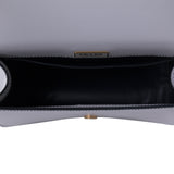 Details: White and Navy Leather / Gold-Tone Hardware / White Fabric and Blue Leather Adjustable Shoulder Strap / Logo at Front Face / Black Leather Lining / Single Compartment / Slit Pocket at Inside / Magnetic Button Closure at Front