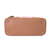 Details: Pesco and Natura (Pink and Tan) Saffiano Leather / Silver-Tone Hardware / Dual Rolled Handles / Detachable Adjustable Shoulder Strap / Pink Interior Lining / Three Compartments, Two with Zipper Closure / Flat and Zipper Closure at Inside