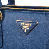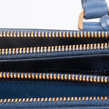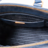 Details: From 2014 Collection / Blue Navy Saffiano Leather / Gold Tone Hardware / Dual Rolled Handles / Adjustable And Removable Shoulder Strap / Double Large Exterior Pocket With Zip Closure On Top / Exterior Small Pocket At Front With Snap Lock Closure / Interior Single Pocket With Triple Slit Pocket At Interior Walls