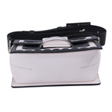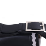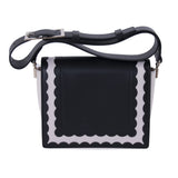 Details: Black and White Leather / Silver-Tone Hardware / Adjustable Shoulder Strap / Interior Leather Lining / Internal Zipped and Slot Pockets / Front Slit Pocket / Magnetic Snap Closure