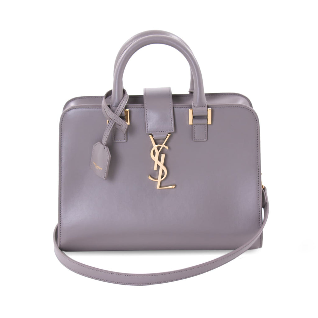 Details: Grey Calf Leather / Gold-Tone Hardware / Detachable Shoulder Strap / Dual Rolled Handles / Signature YSL Logo at Front / Black Leather Interior Lining / Single Flat Pocket at Inside / Dual Zipper Closure at Top