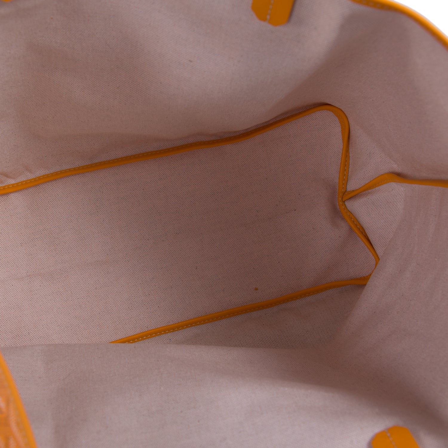 Details: Yellow, Brown and White Goyardine Coated Canvas / Yellow Leather Trim / Dual Rolled Handles / Single Compartment / Natural Fabric Lining / Detachable Pocket / Open Top